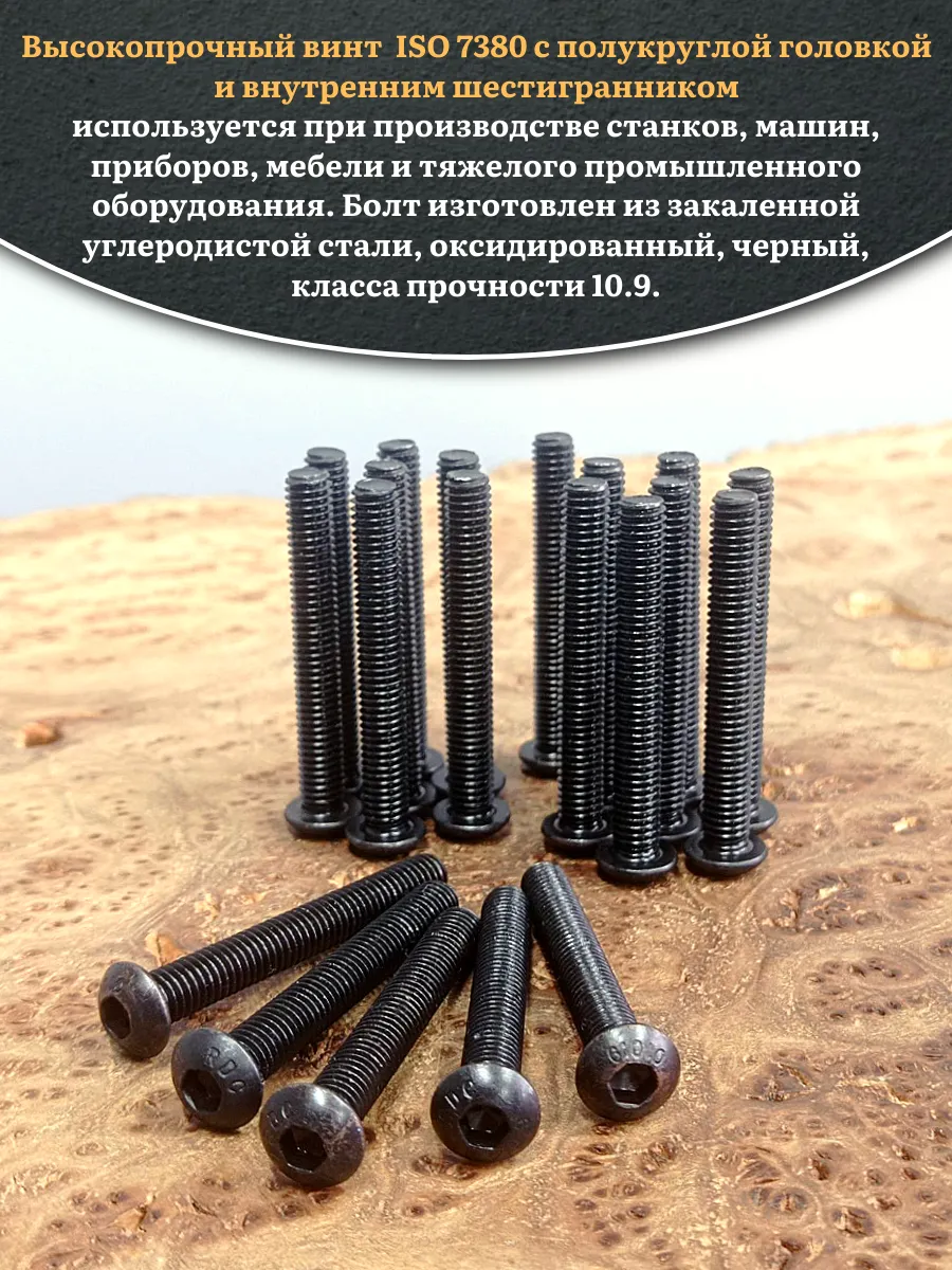 Винт чёрный М6х50 ISO 7380 под шестигранник к.п.10.9, 50 шт.