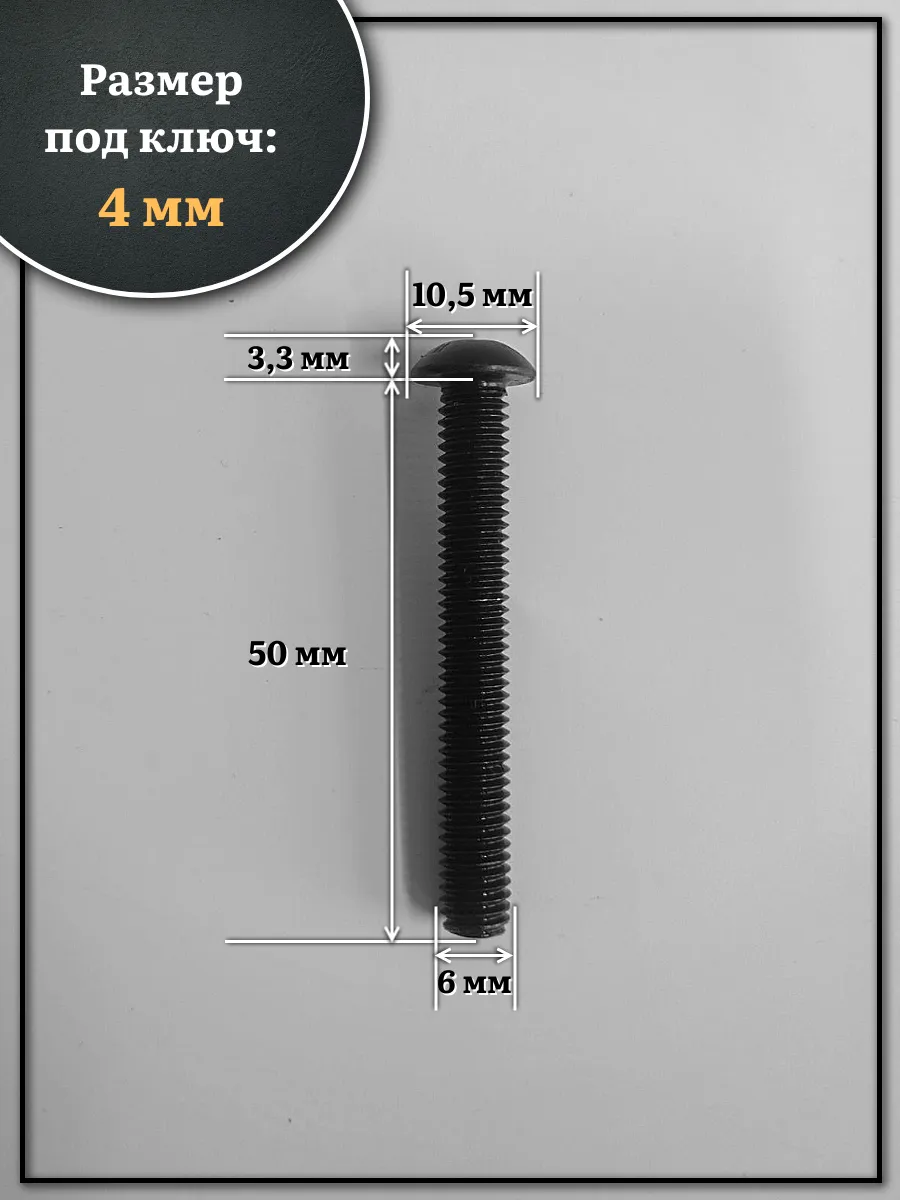 | Винт чёрный М6х50 ISO 7380 под шестигранник к.п.10.9, 10 шт. | 00-00000106ф10 | 1 шт. |