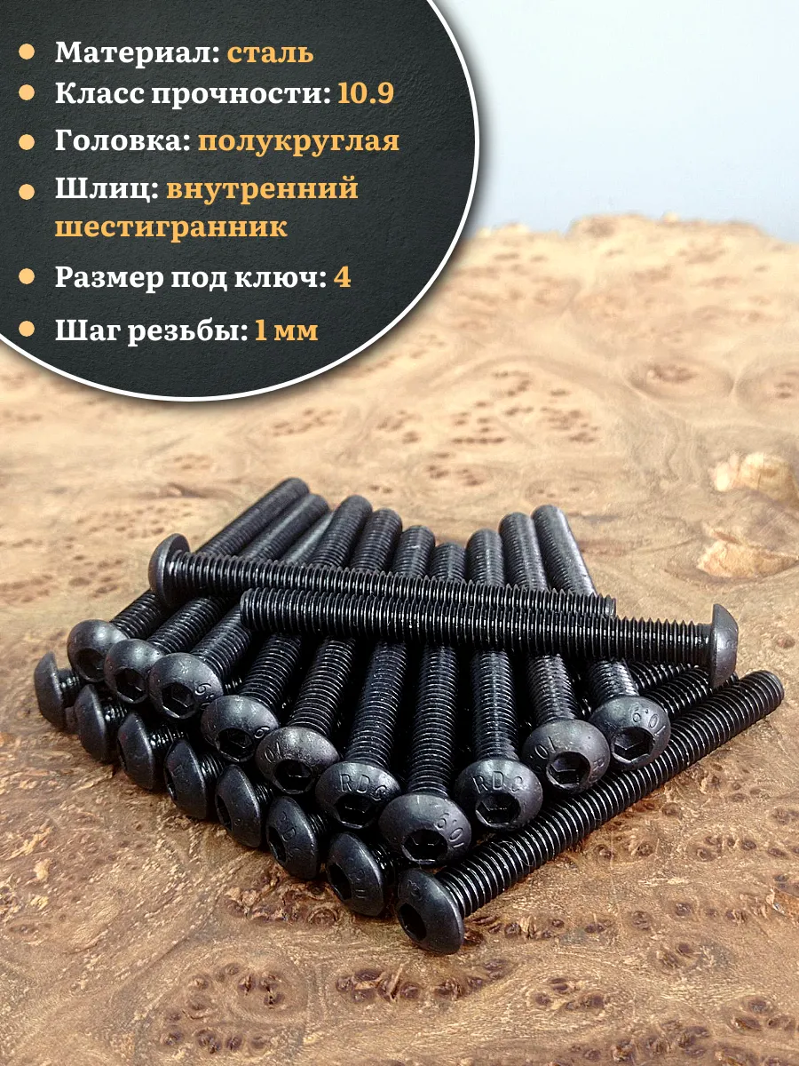| Винт чёрный М6х55 ISO 7380 под шестигранник к.п.10.9, 20 шт. | 00-00003730ф20 | 1 шт. |