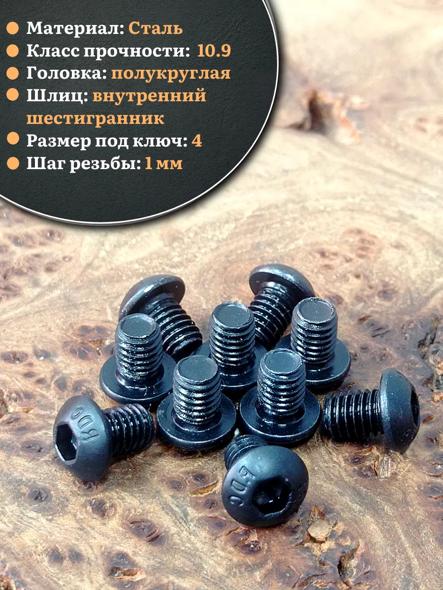 | Винт чёрный М6х8 ISO 7380 под шестигранник к.п.10.9, 10 шт. | 00-00003385ф10 | 1 шт. |