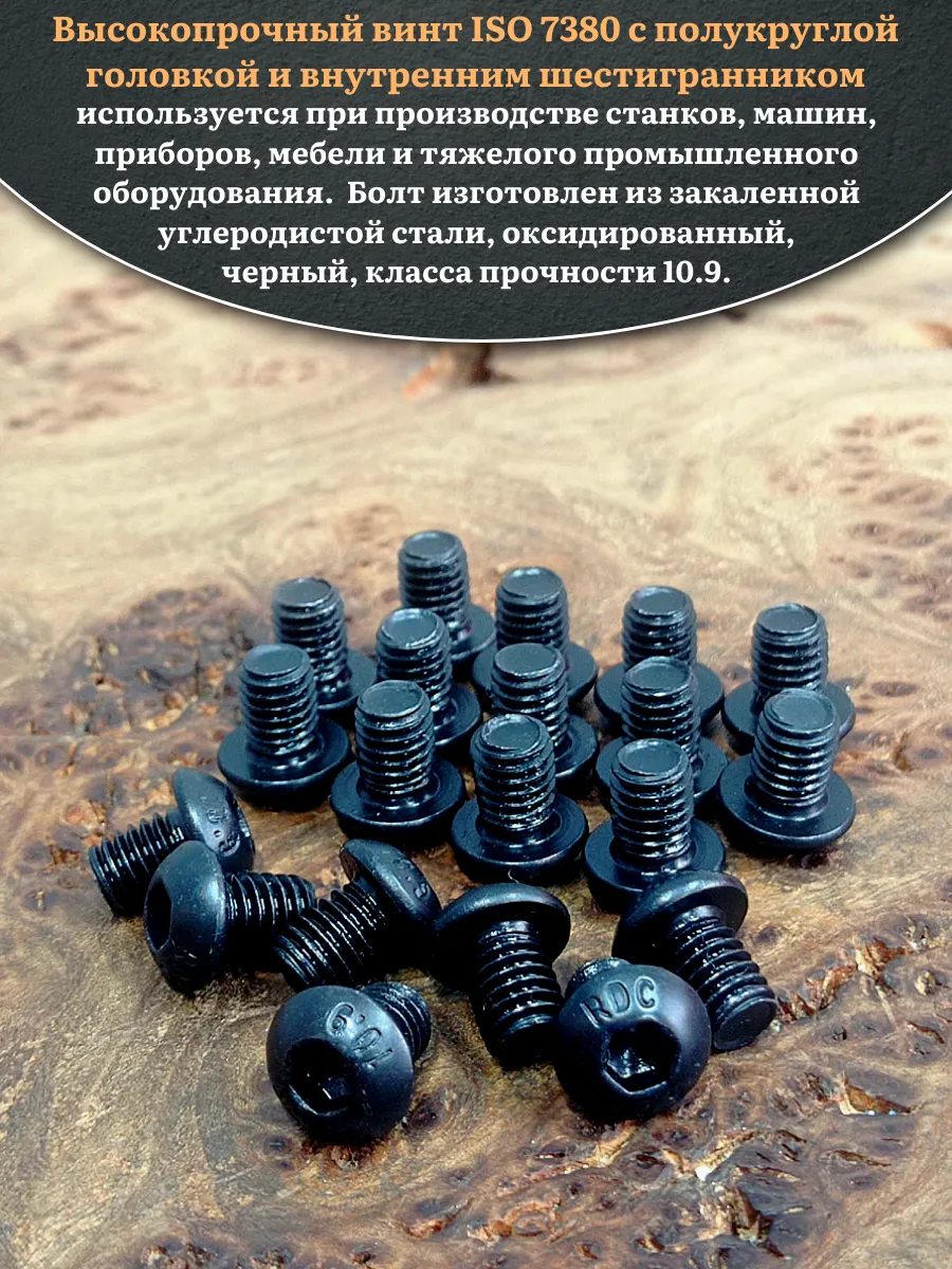 Винт чёрный М6х8 ISO 7380 под шестигранник к.п.10.9, 20 шт.