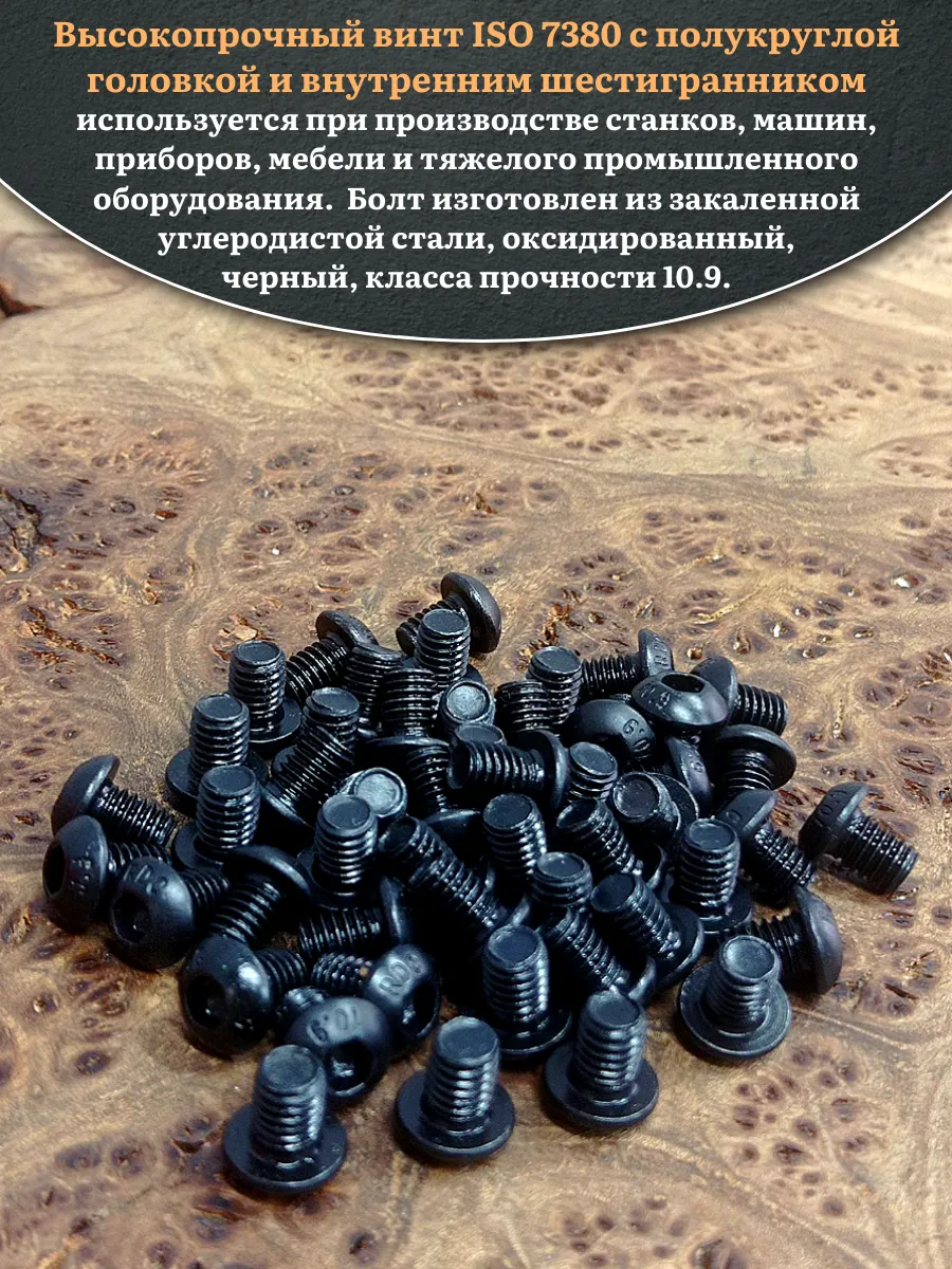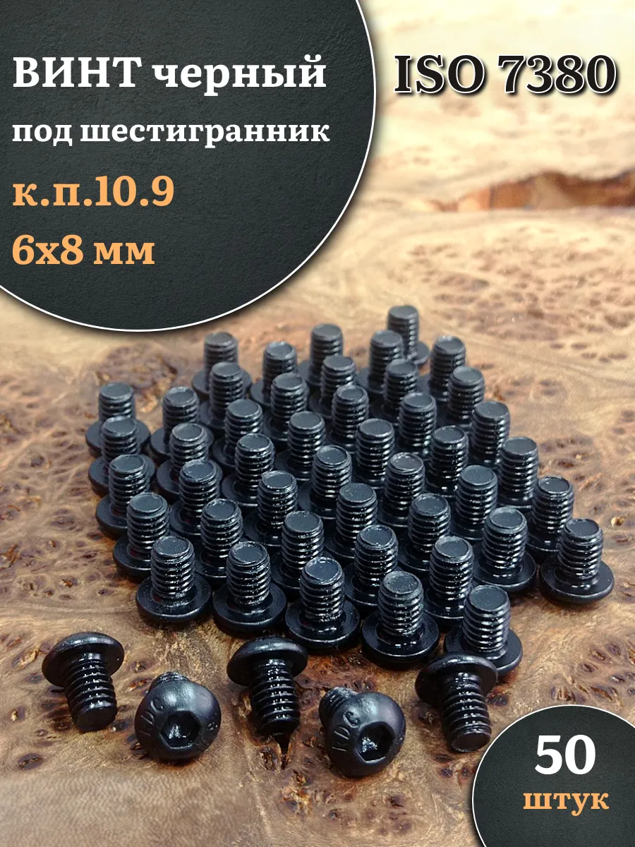Винт чёрный М6х8 ISO 7380 под шестигранник к.п.10.9, 50 шт.