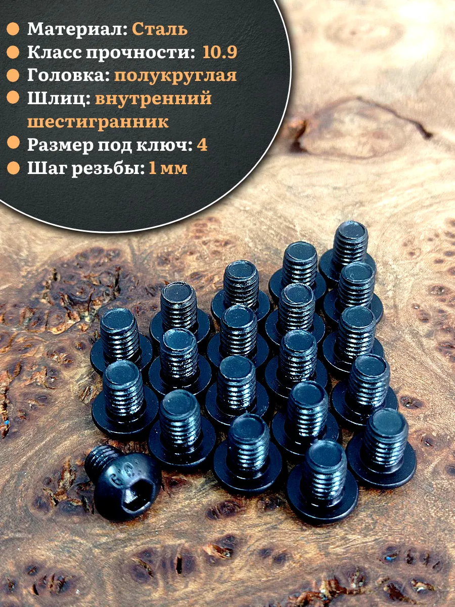 | Винт чёрный М6х8 ISO 7380 под шестигранник к.п.10.9, 20 шт. | 00-00003385ф20 | 1 шт. |