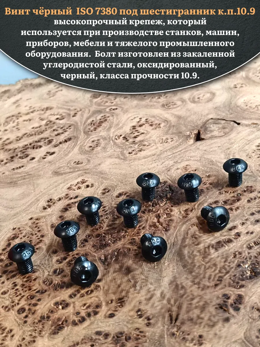 Винт чёрный М8х10 ISO 7380 под шестигранник к.п.10.9, 100 шт.