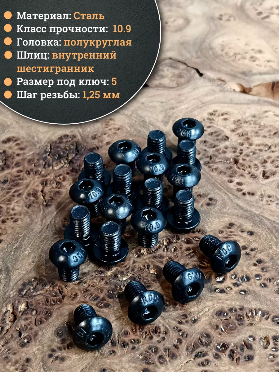 | Винт чёрный М8х10 ISO 7380 под шестигранник к.п.10.9, 20 шт. | 00-00004445ф20 | 1 шт. |