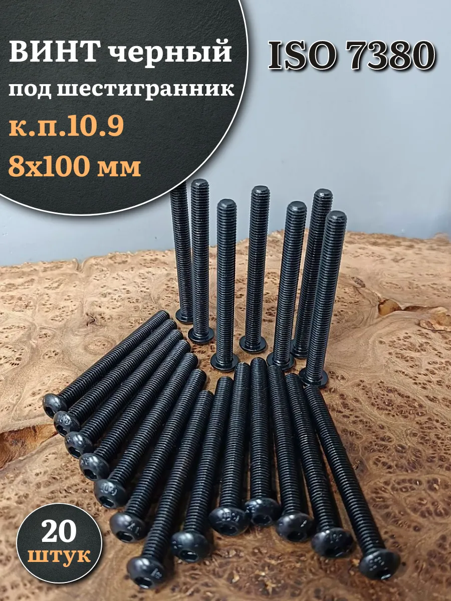 Винт чёрный М8х100 ISO 7380 под шестигранник к.п.10.9, 20 шт.