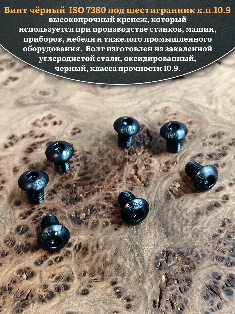 Винт чёрный М8х12 ISO 7380 под шестигранник к.п.10.9, 10 шт.