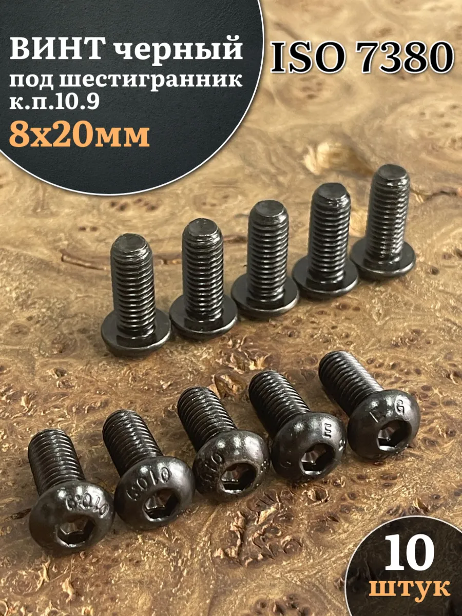 Винт чёрный М8х20 ISO 7380 под шестигранник к.п.10.9, 10 шт.
