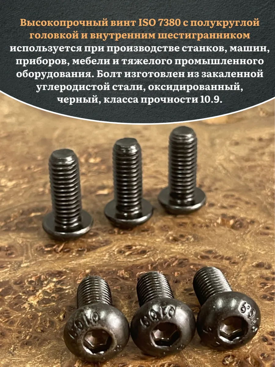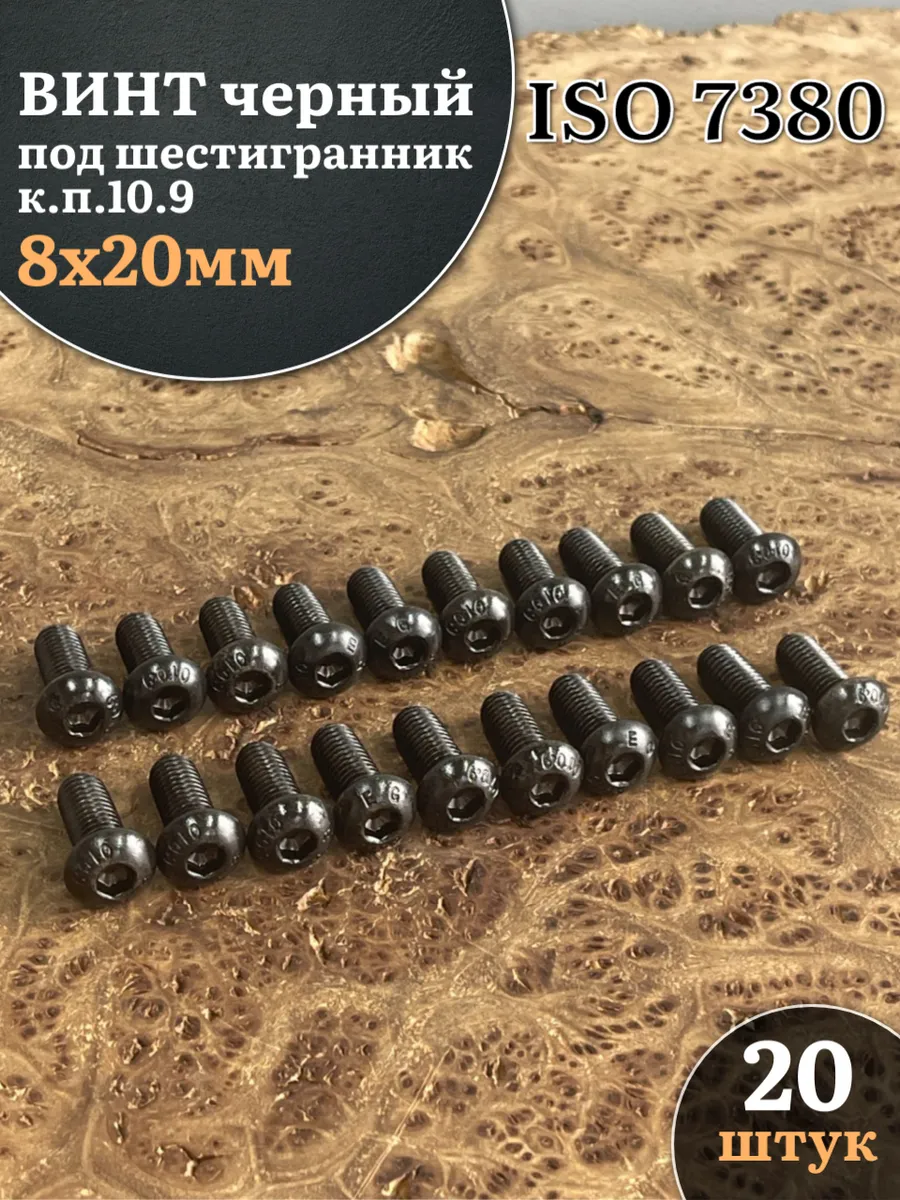Винт чёрный М8х20 ISO 7380 под шестигранник к.п.10.9, 20 шт.