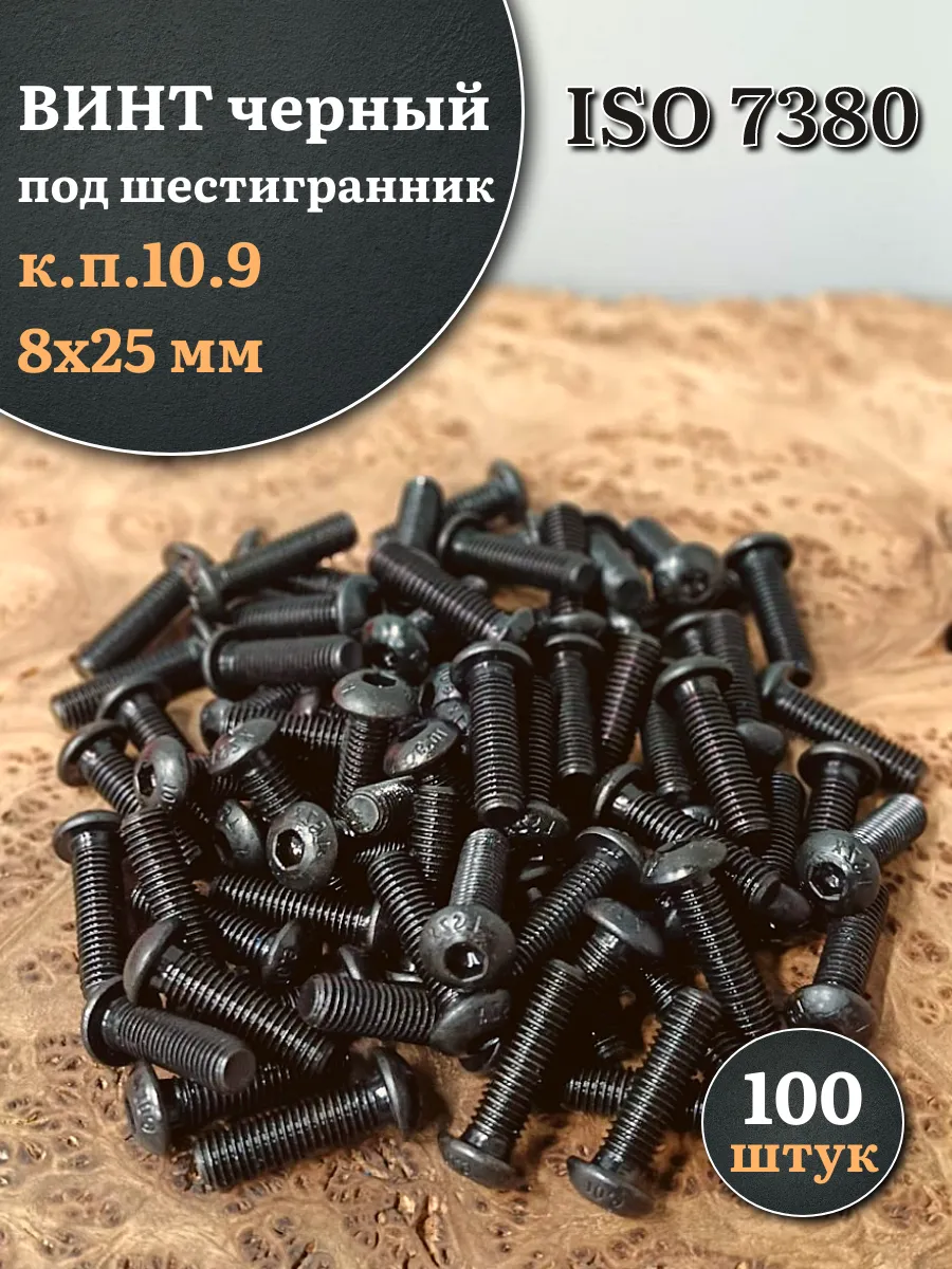 | Винт чёрный М8х25 ISO 7380 под шестигранник к.п.10.9, 10 шт. | УФ-00055301ф10 | 1 шт. |