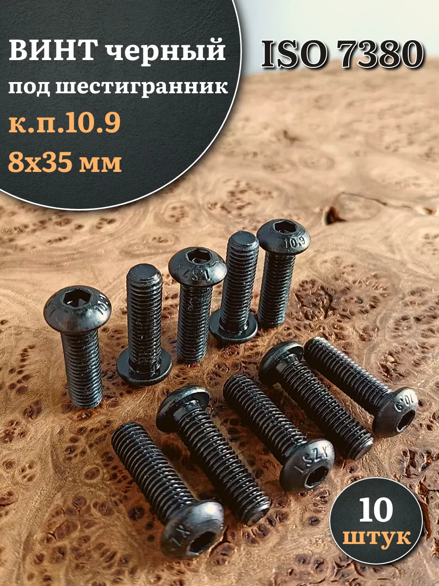 Винт чёрный М8х35 ISO 7380 под шестигранник к.п.10.9, 10 шт.