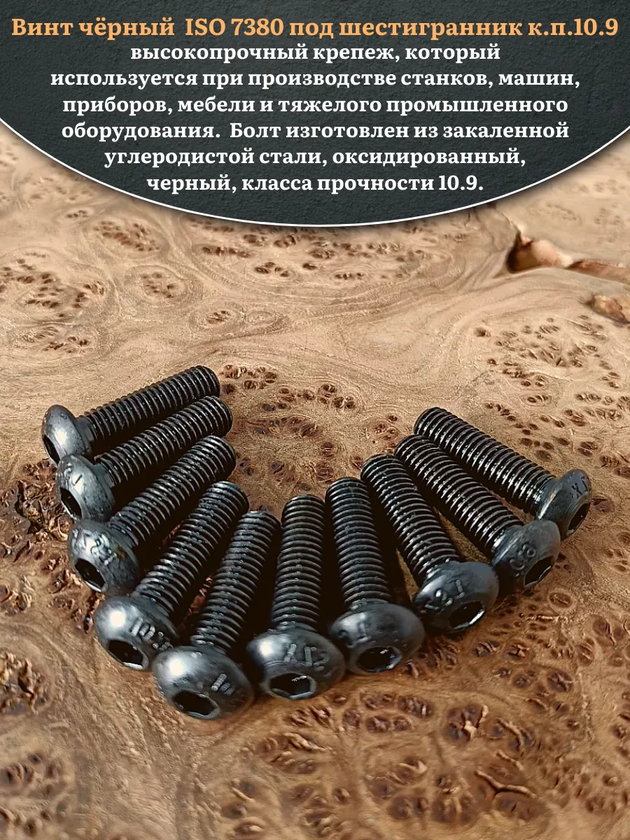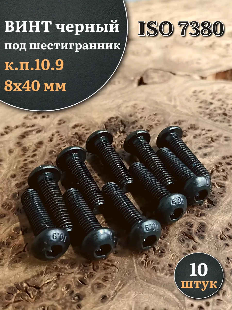 Винт чёрный М8х40 ISO 7380 под шестигранник к.п.10.9, 10 шт.