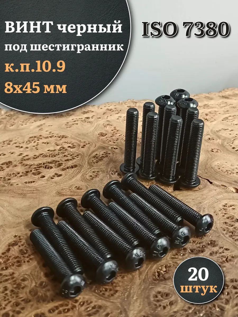 Винт чёрный М8х45 ISO 7380 под шестигранник к.п.10.9, 20 шт.
