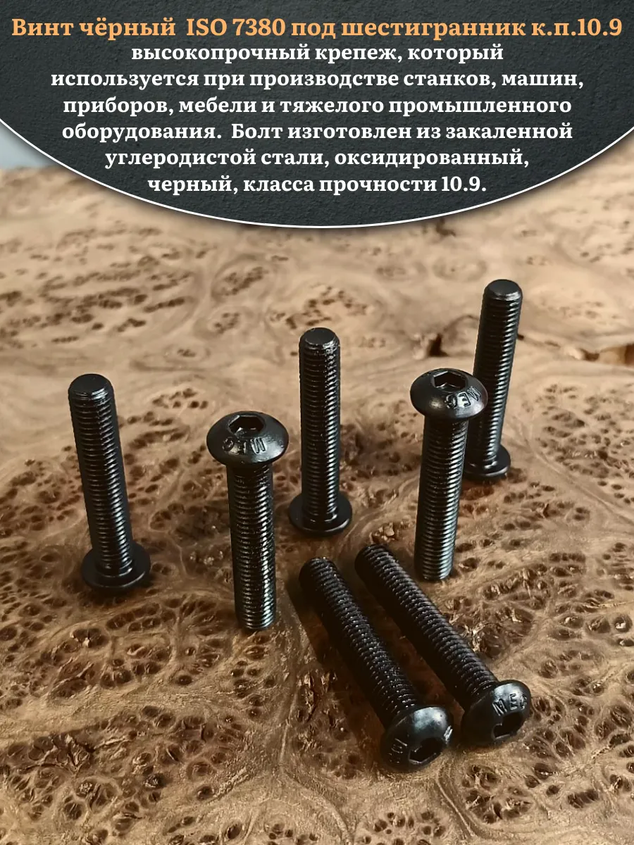 | Винт чёрный М8х45 ISO 7380 под шестигранник к.п.10.9, 10 шт. | 00-00006379ф10 | 1 шт. |