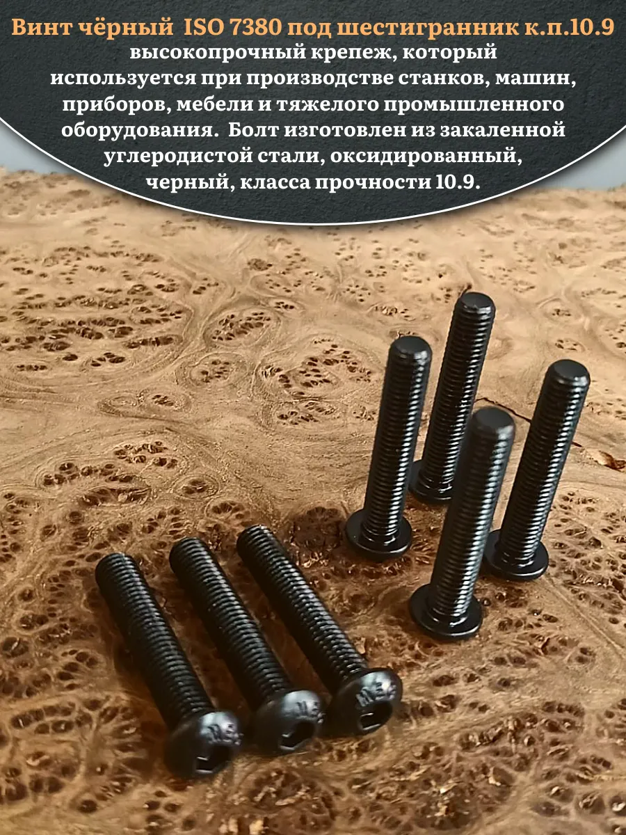 Винт чёрный М8х45 ISO 7380 под шестигранник к.п.10.9, 50 шт.