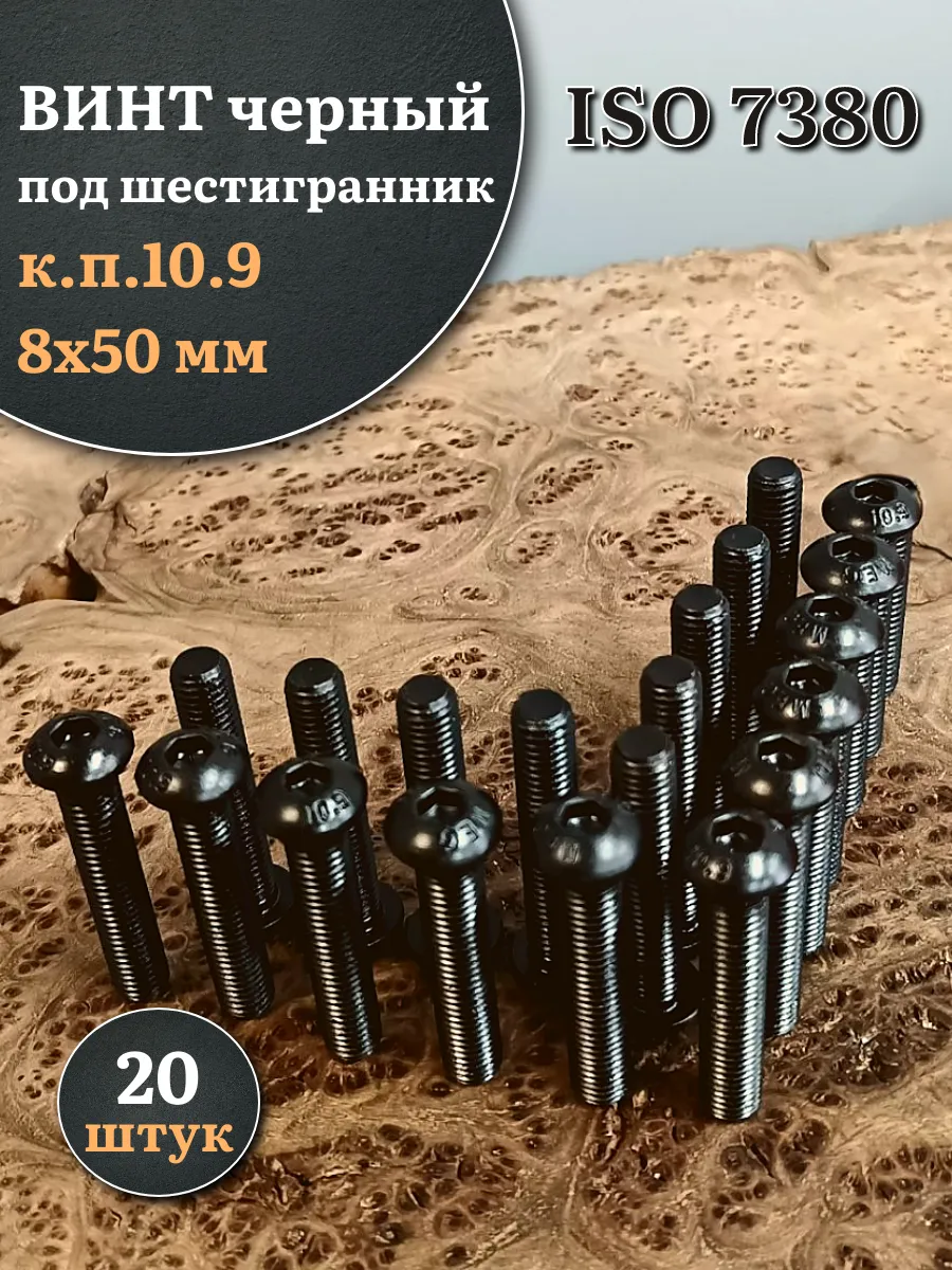 | Винт чёрный М8х50 ISO 7380 под шестигранник к.п.10.9, 50 шт. | 00-00000107ф50 | 1 шт. |