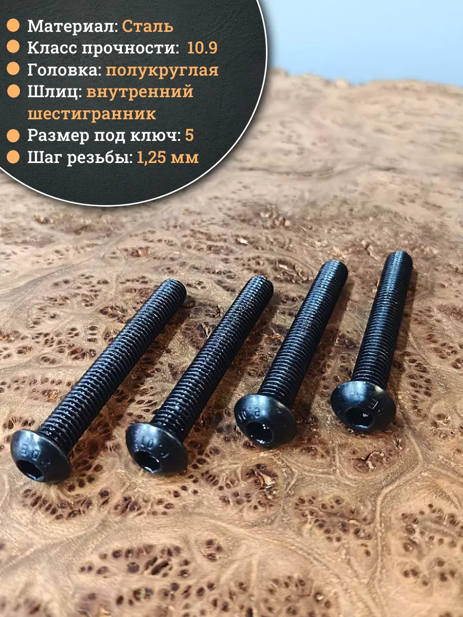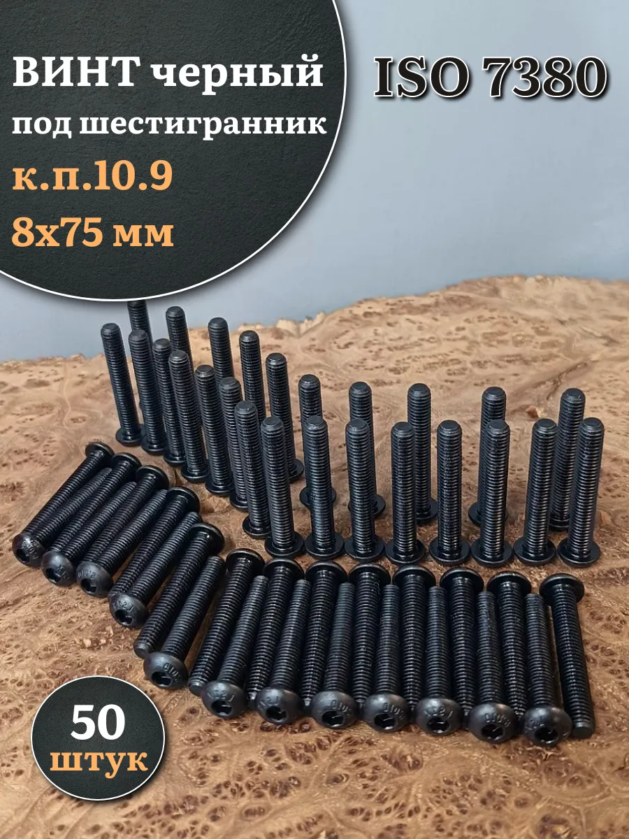 Винт чёрный М8х75 ISO 7380 под шестигранник к.п.10.9, 50 шт.