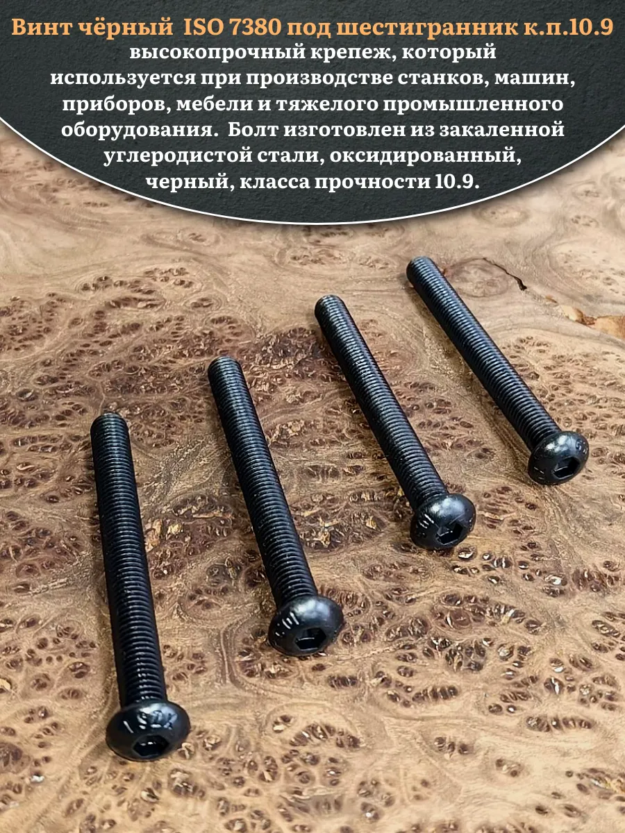 Винт чёрный М8х80 ISO 7380 под шестигранник к.п.10.9, 10 шт.