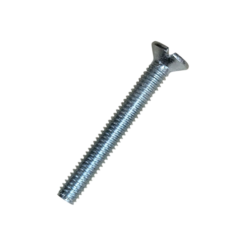 Крепеж по стандарту DIN 963 (ISO 2009) — это винт с потайной головкой и прямым шлицем. Он имеет вид металлического стержня с полной метрической резьбой и тупым концом. Благодаря разнообразию длин этот крепёж подходит для монтажа деталей разной толщины. В потайной головке есть прямой шлиц под плоскую отвёртку. Такой крепёж часто используют в машиностроении, строительстве и других отраслях производства для создания соединений, которые нужно периодически разбирать и собирать заново.