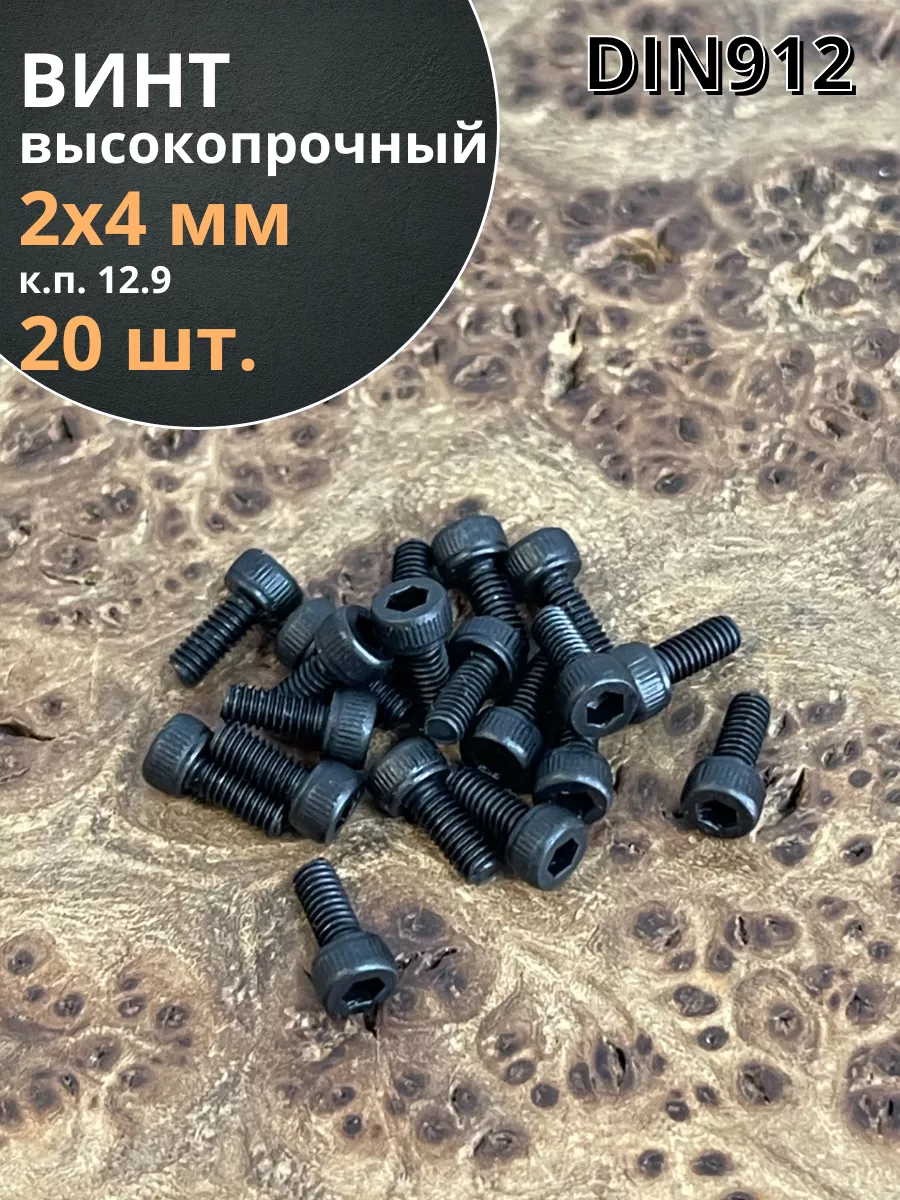 Винт высокопрочный ПР М2х4 мм к.п.12.9 черный DIN912, 20 шт.