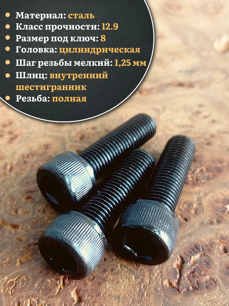 Винт мелкая резьба чёрный к.п.12.9 10х35х1,25 DIN912, 20 шт.