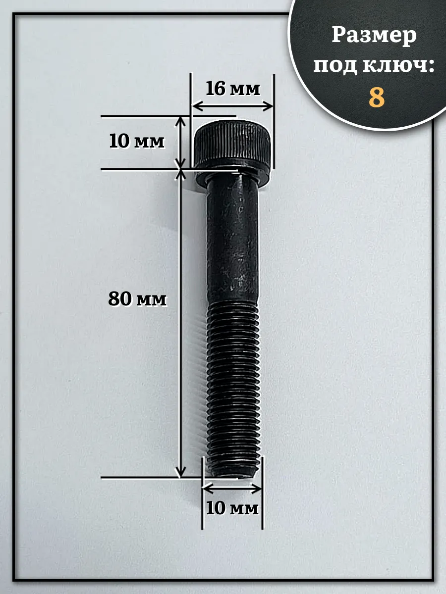 Винт мелкая резьба чёрный к.п.12.9 10х80х1 DIN912, 10 шт.