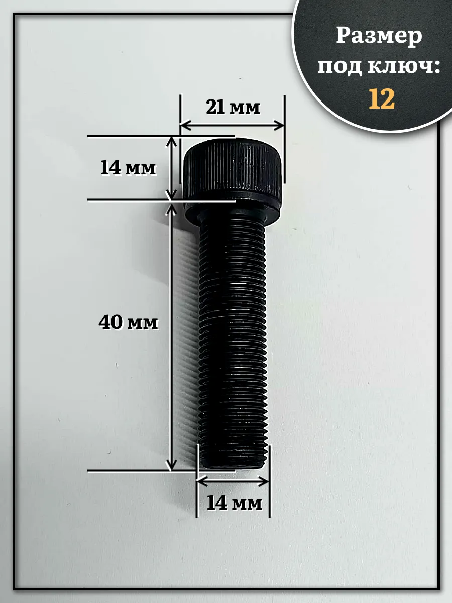 Винт мелкая резьба чёрный к.п.12.9 14х40х1,5 DIN912, 10 шт.