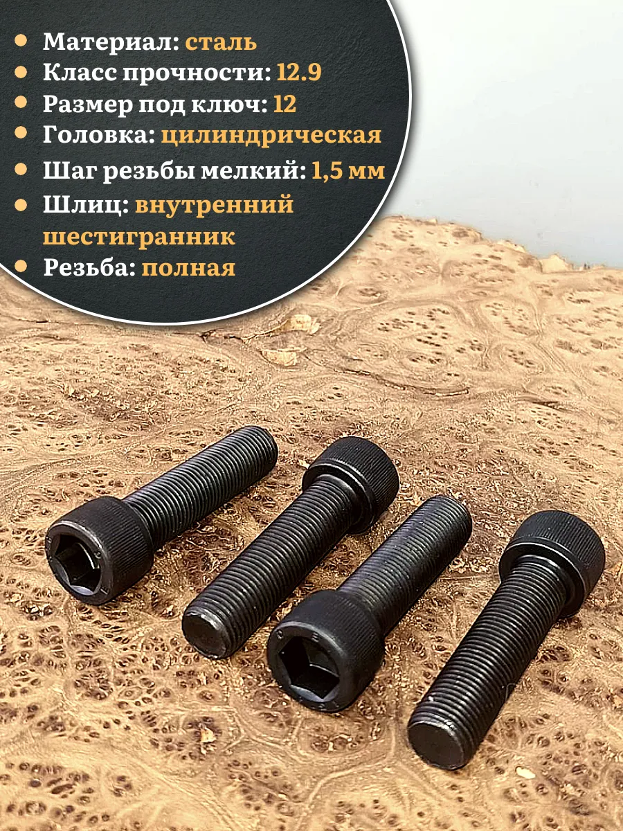 Винт мелкая резьба чёрный к.п.12.9 14х40х1,5 DIN912, 4 шт.