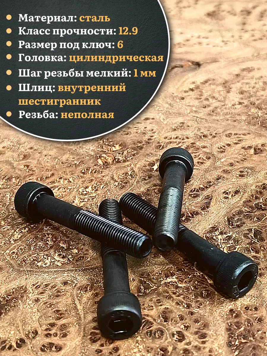 Винт мелкая резьба чёрный к.п.12.9 8х40х1 DIN912, 10 шт.