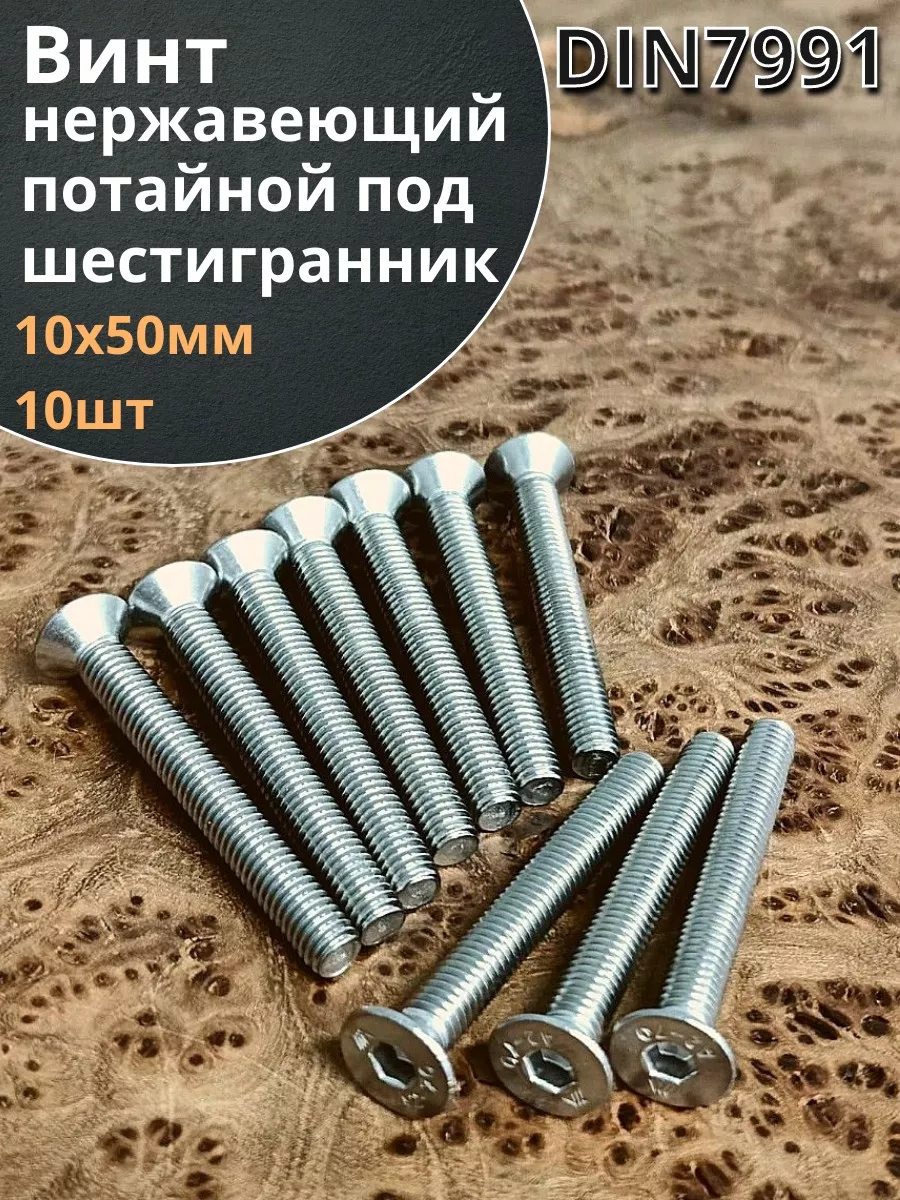 Винт нержавеющий 10х50 потайной шестигранник DIN7991,10шт
