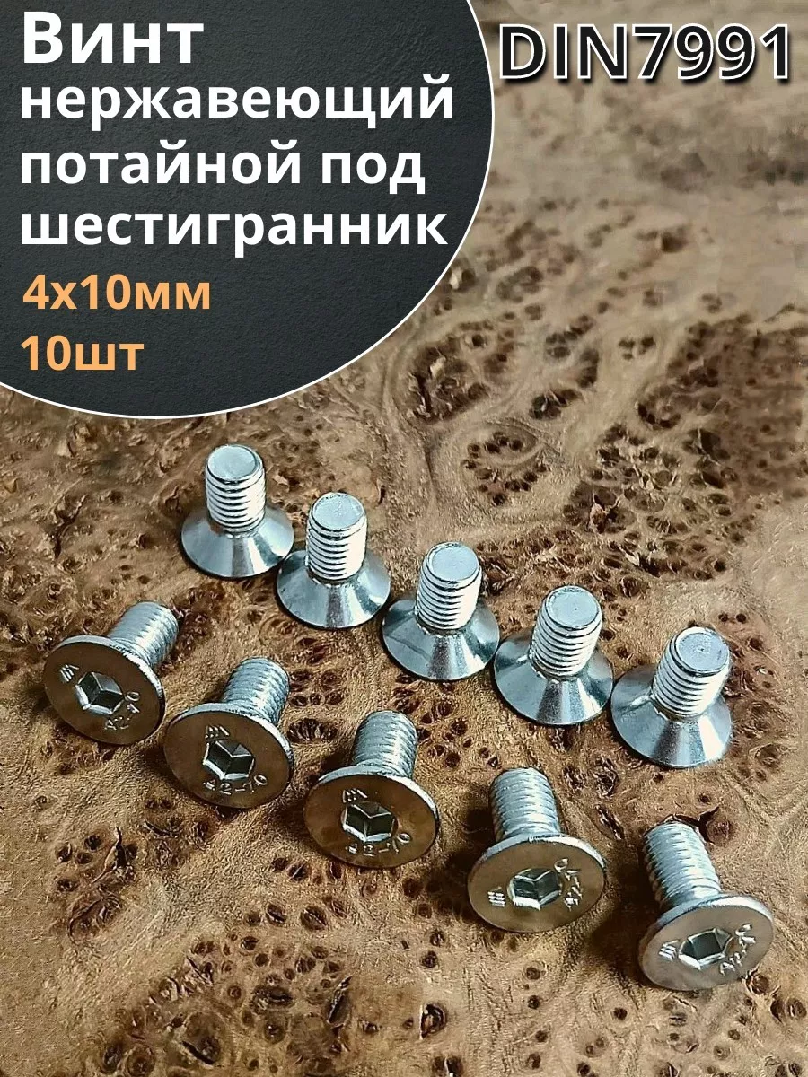 Винт нержавеющий 4х10 потайной под шестигранник DIN7991,10шт