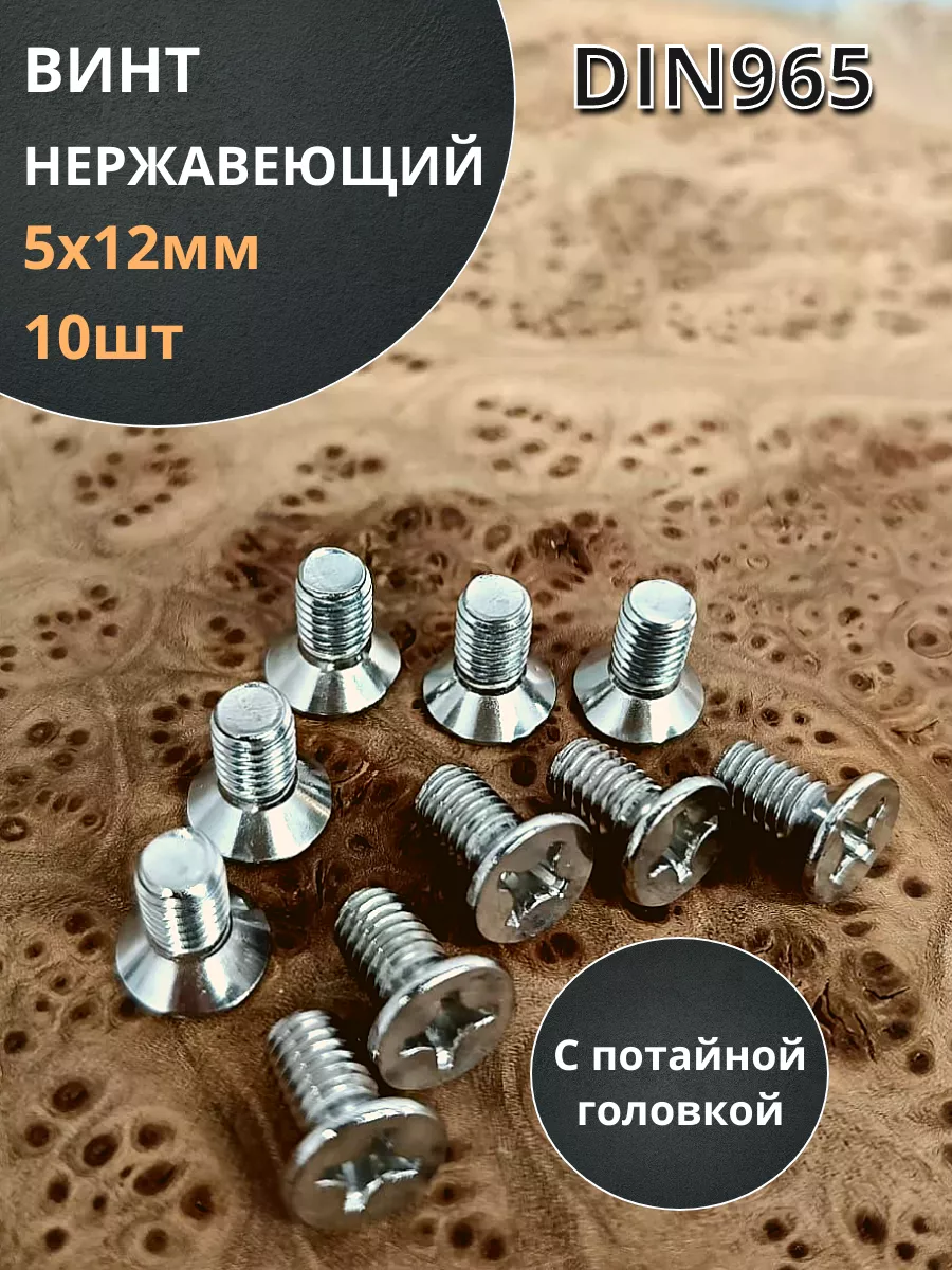 Винт нержавеющий 5х12 мм DIN 965 с потайной головкой ,10 шт