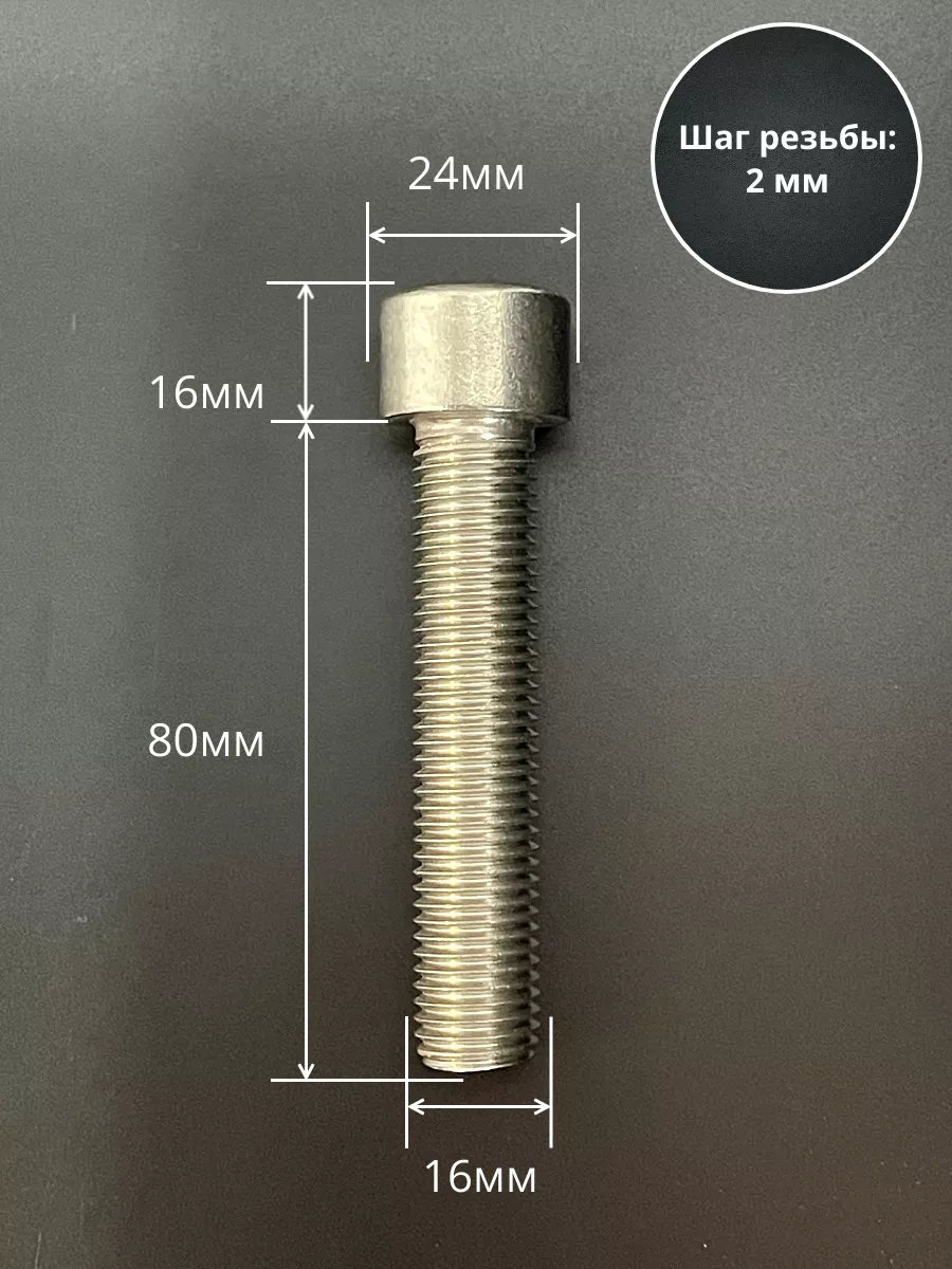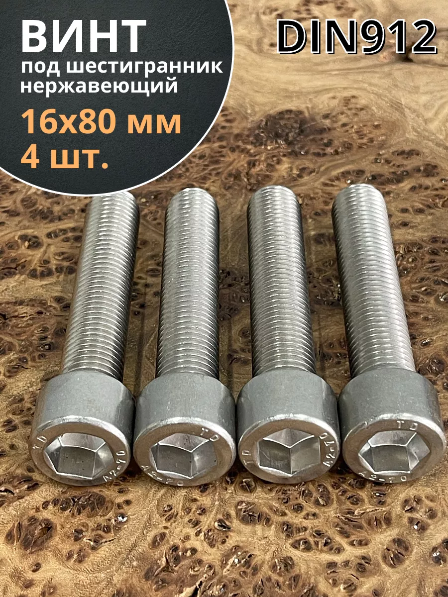 Винт нержавеющий шестигранник М16х80 DIN 912, 4 шт.