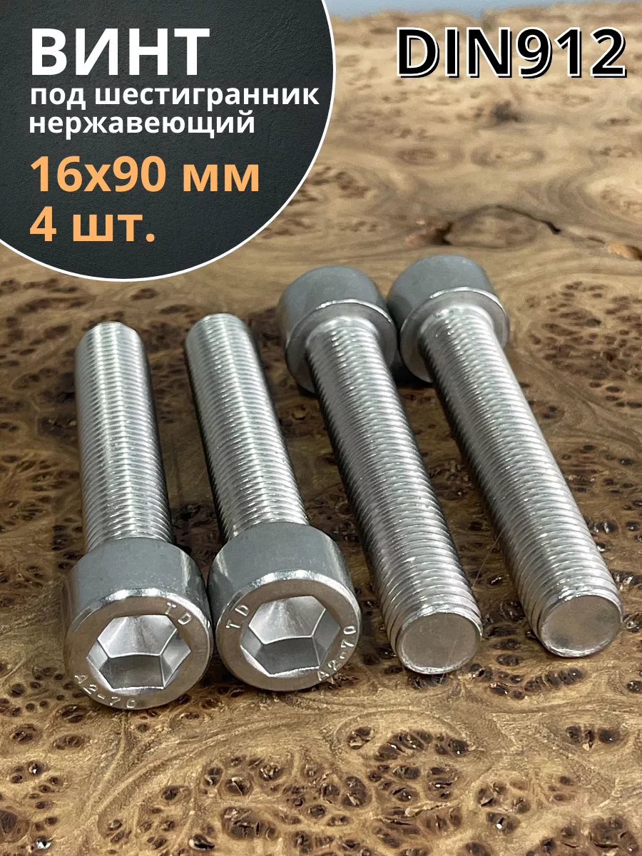 Винт нержавеющий шестигранник М16х90 DIN 912, 4 шт.