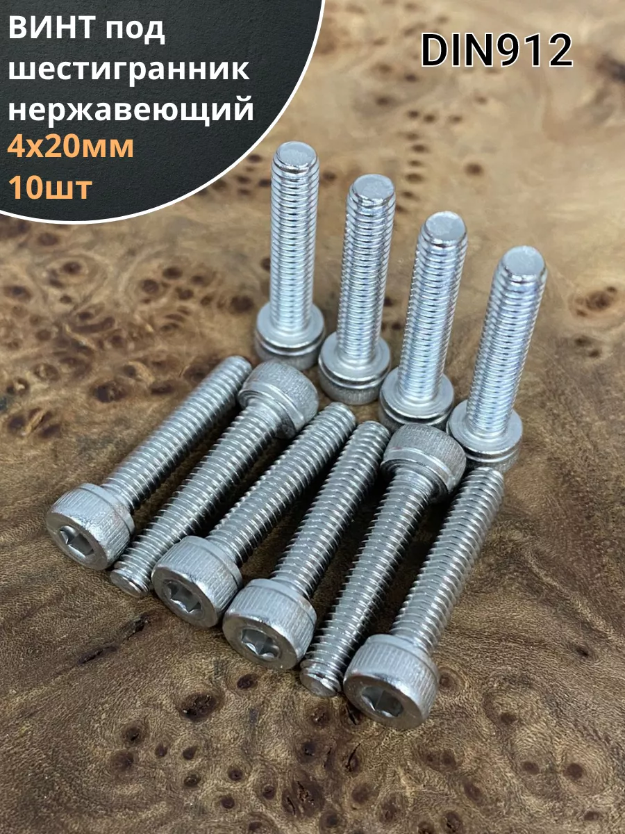 Винт нержавеющий шестигранник М4х20, DIN 912, 10 шт
