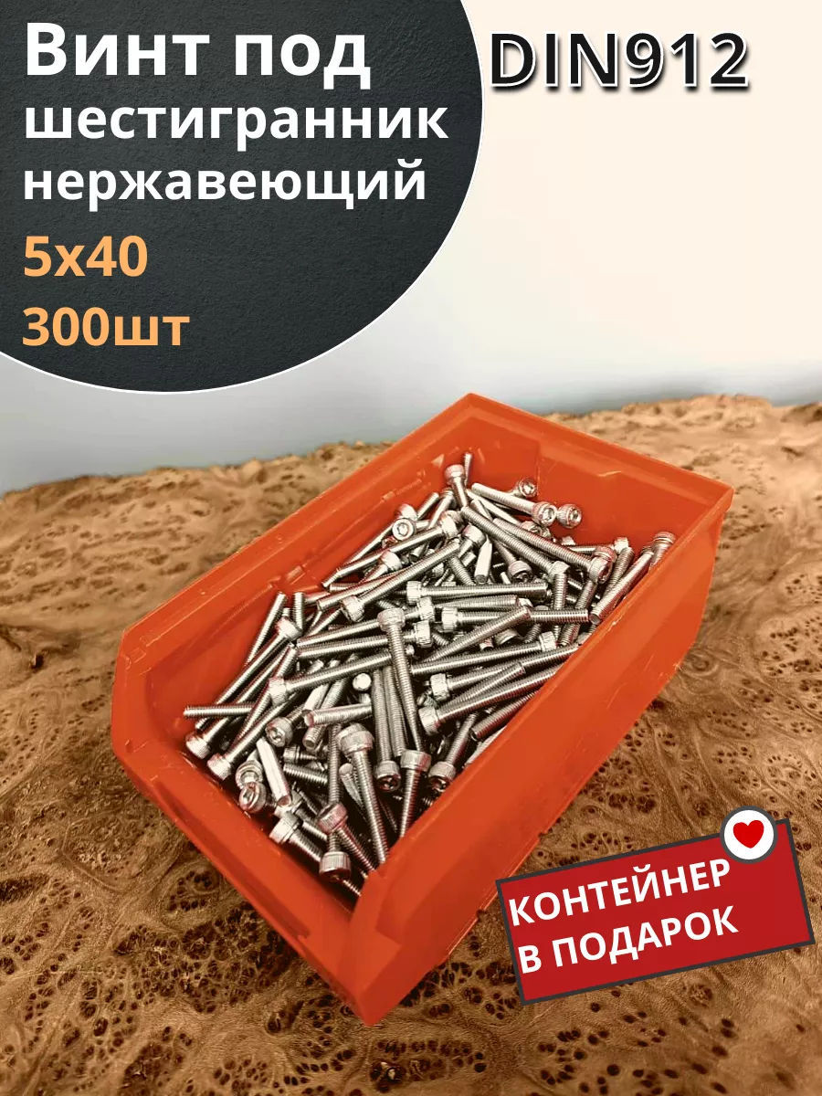 Винт нержавеющий шестигранник М5х40,DIN912 (300шт)контейнер