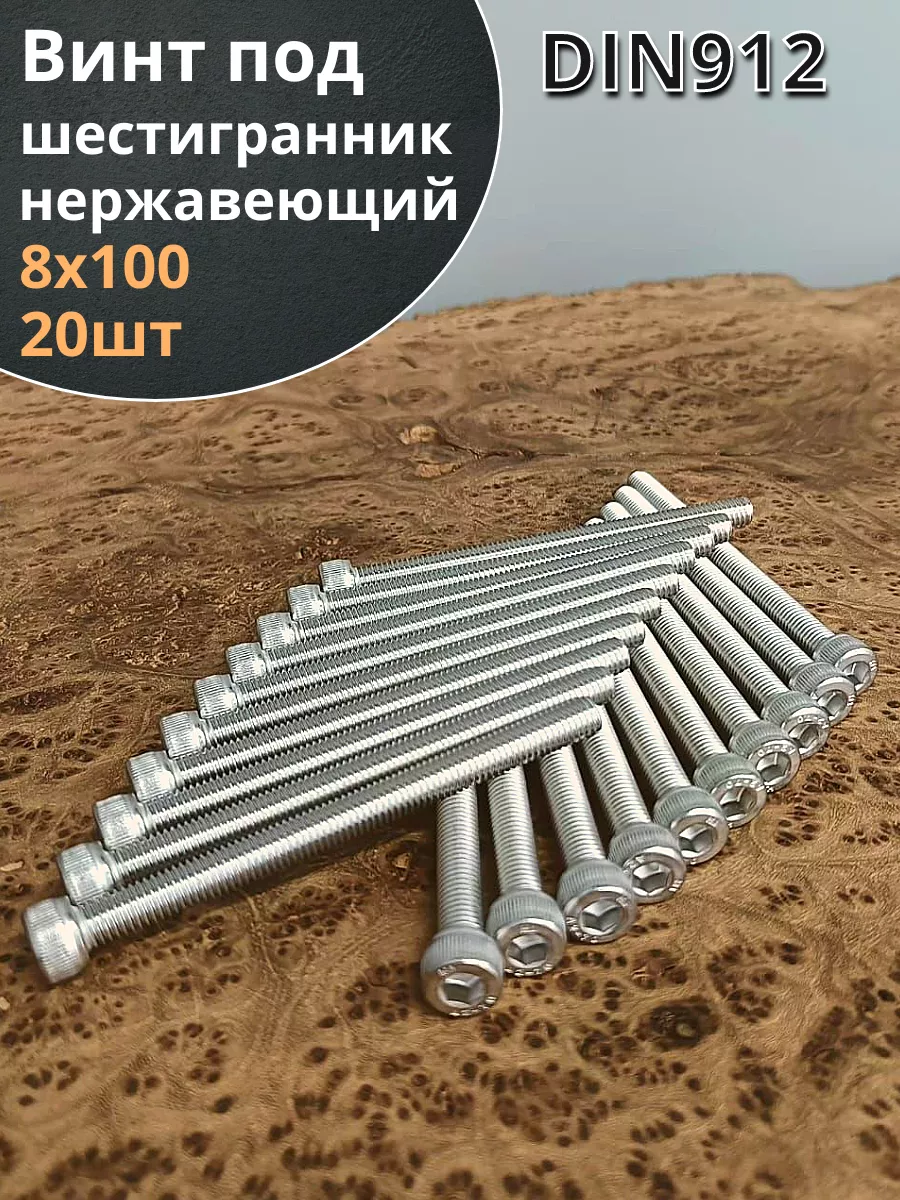 Винт нержавеющий шестигранник М8х100, DIN 912, 20 шт