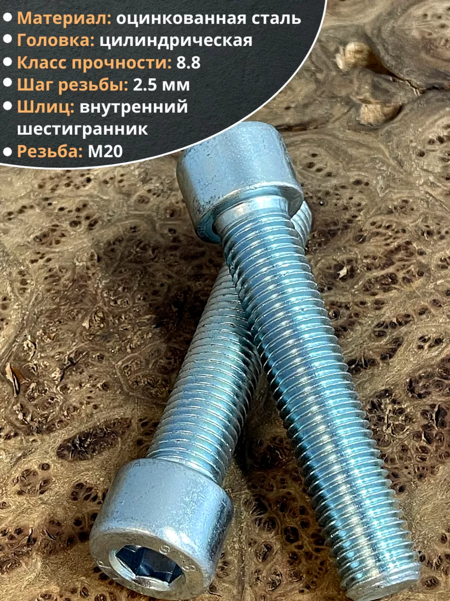 Винт под шестигранник ПР 20х100 мм ОЦ к.п.8.8 DIN912, 2 шт.