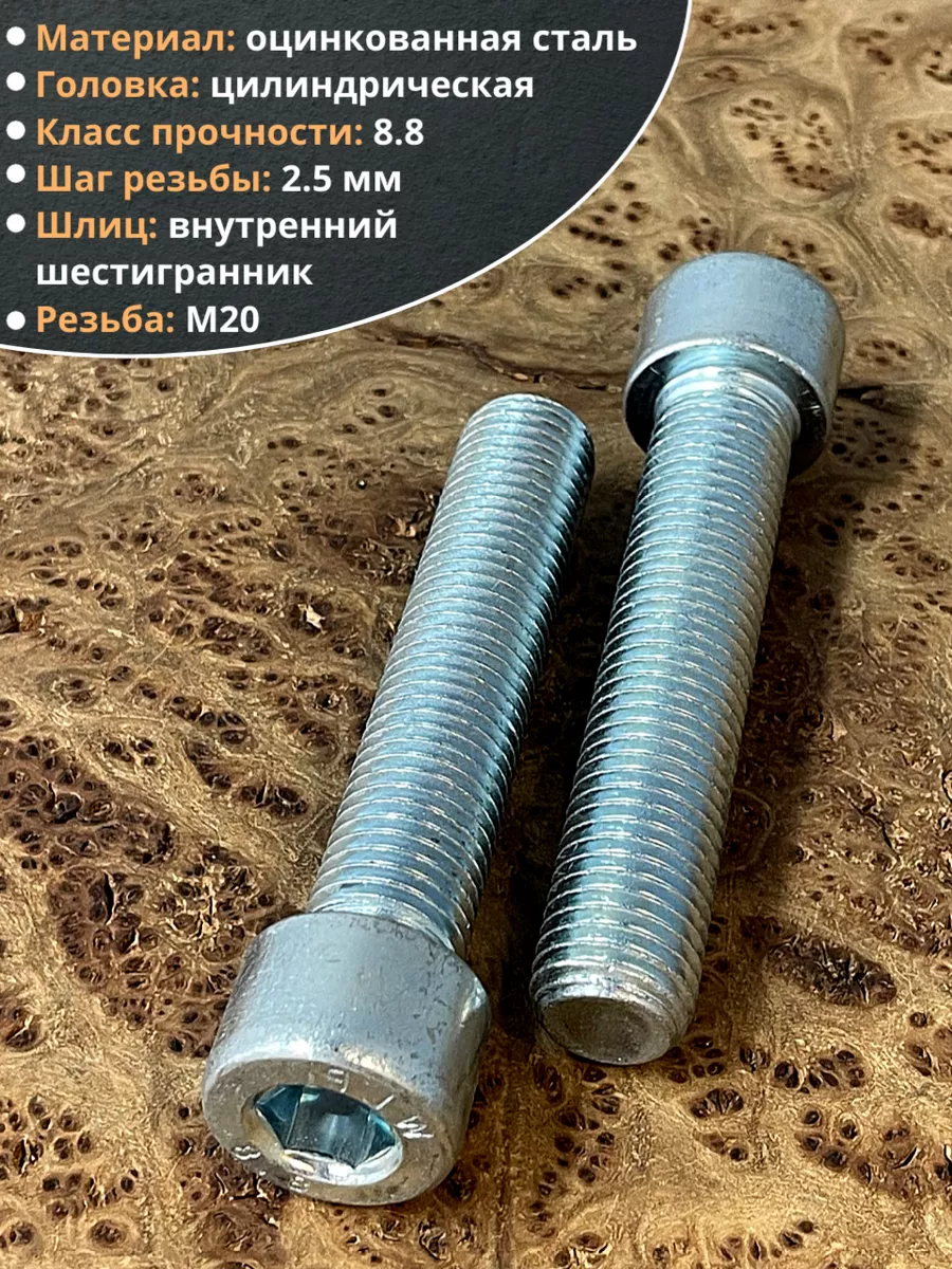 Винт под шестигранник ПР 20х90 мм ОЦ к.п.8.8 DIN912, 2 шт.