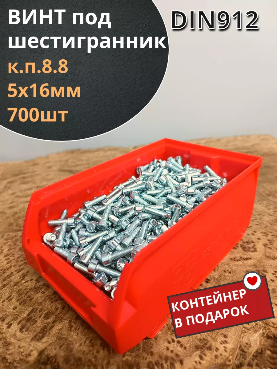Винт под шестигранник ПР 5х16 ОЦ к.п.8.8 DIN912(700шт)контейнер