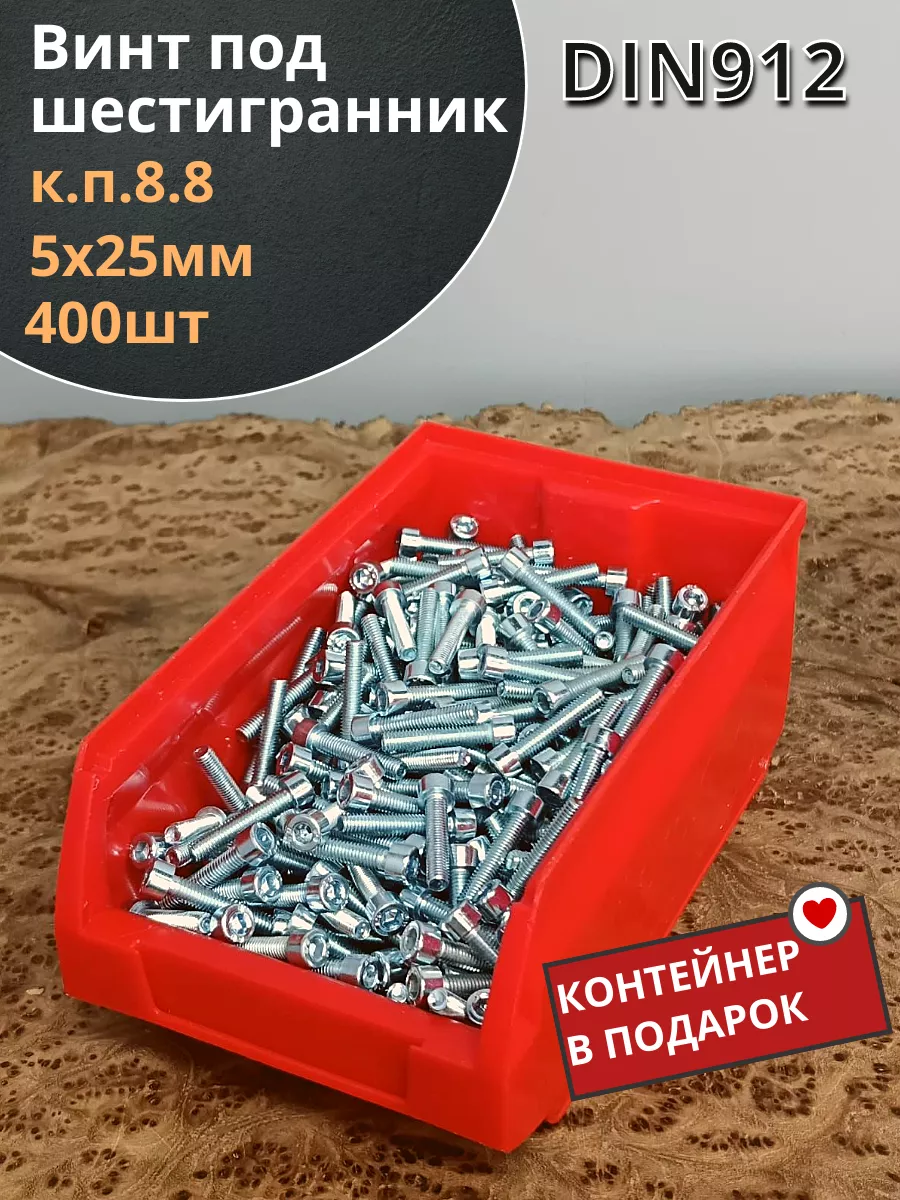 Винт под шестигранник ПР 5х25 к.п.8.8 DIN912(400шт)в контейнере