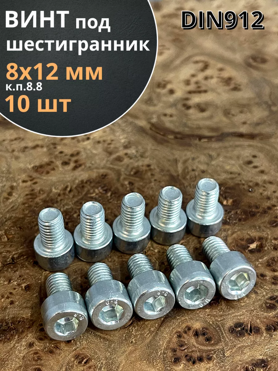 Винт под шестигранник ПР 8х12 мм ОЦ к.п.8.8 DIN912, 10 шт.
