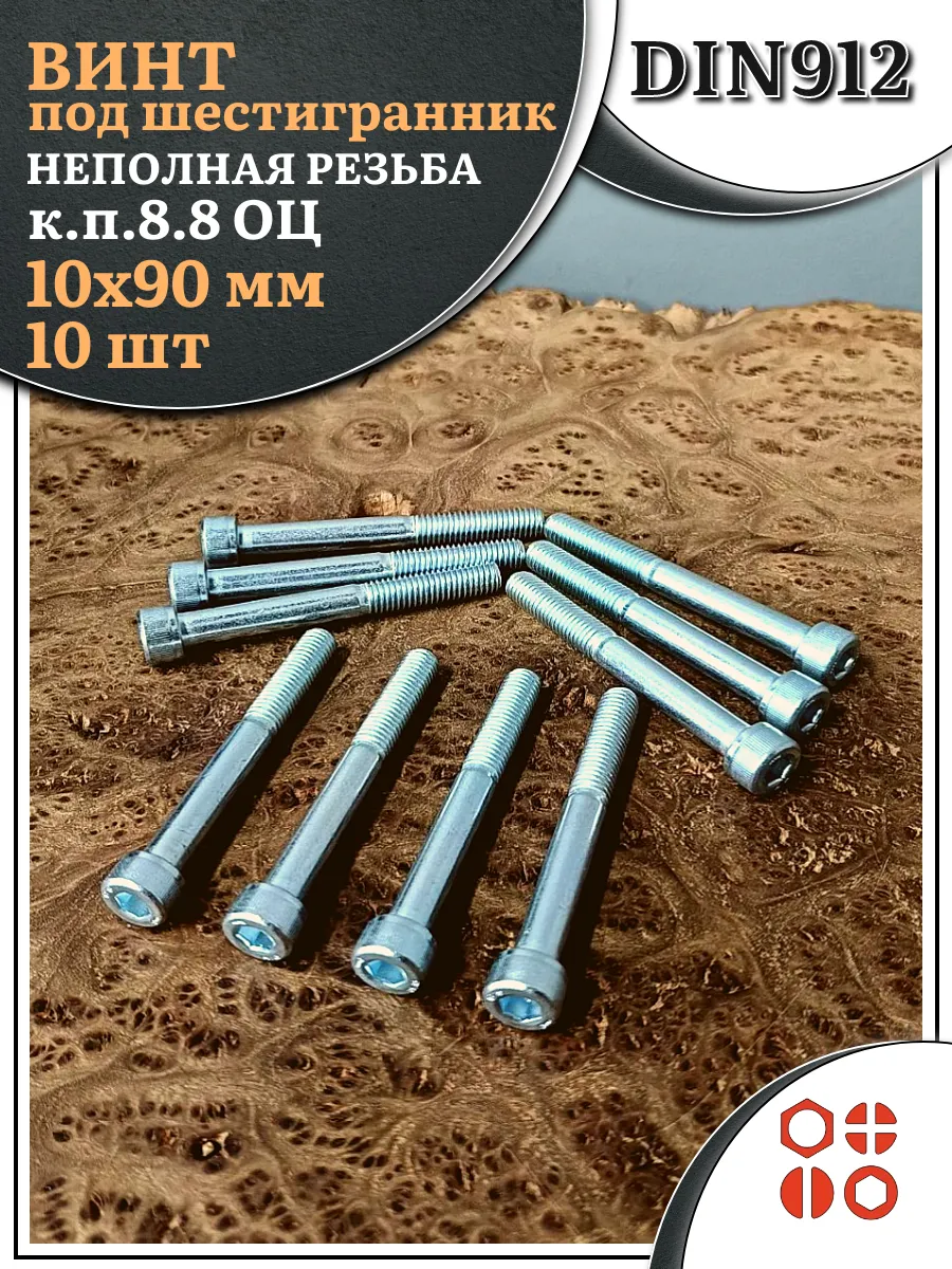 Винт под шестигранник НР 10х90 мм ОЦ к.п.8.8 DIN912, 10 шт.
