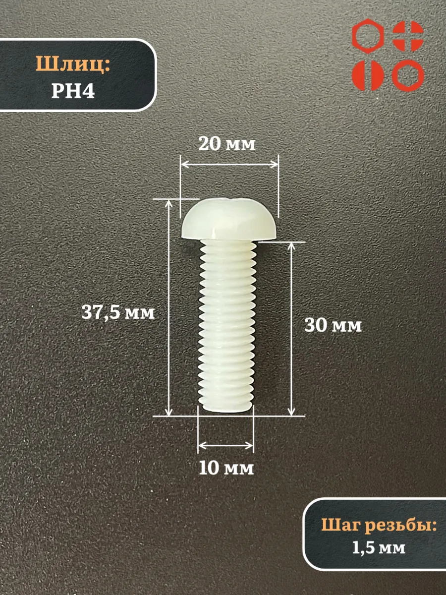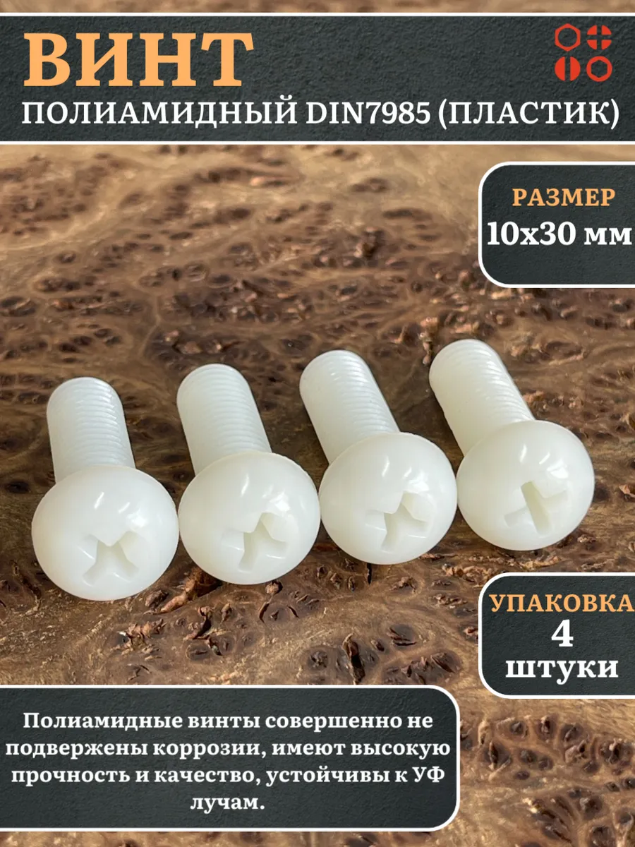 Винт полиамидный 10х30 мм DIN7985 (пластик), 4 шт.