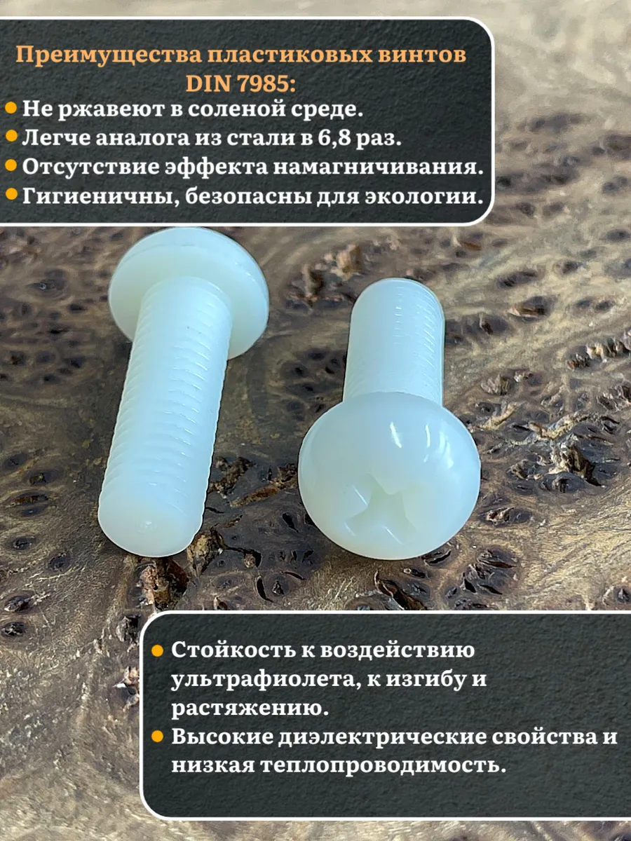 Винт полиамидный 10х30 мм DIN7985 (пластик), 50 шт.
