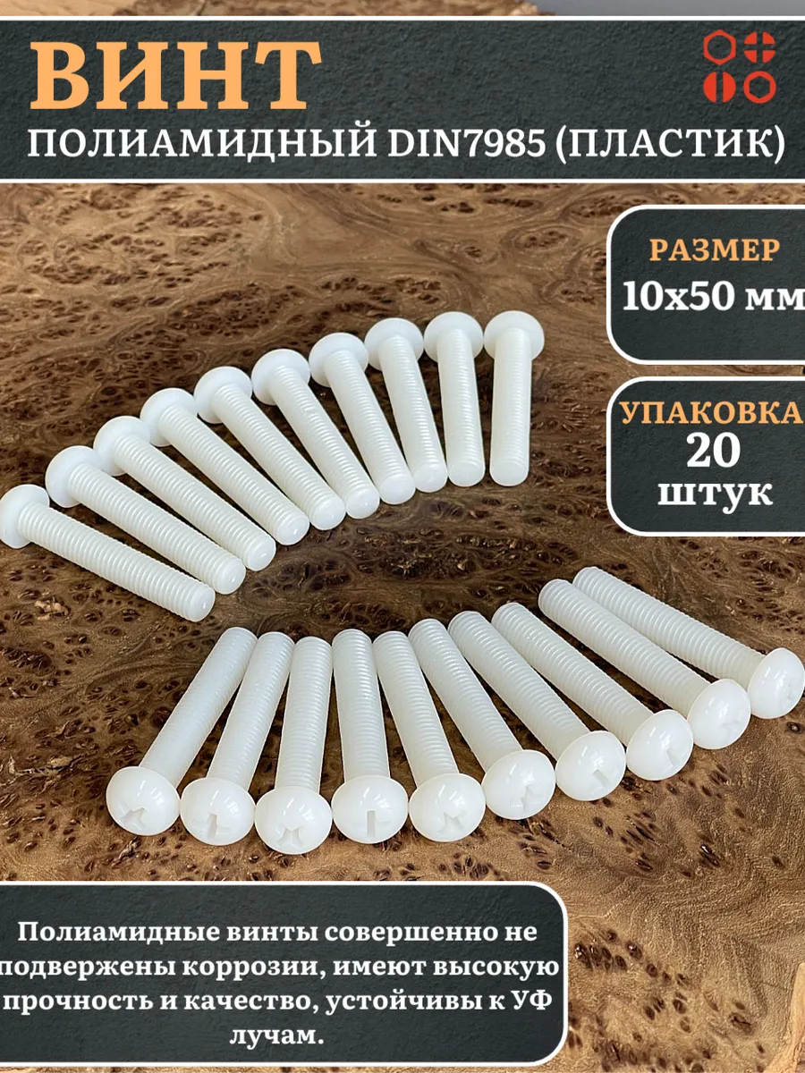 | Винт полиамидный 10х50 мм DIN7985 (пластик), 50 шт. | вп10507985ф50 | 1 шт. |