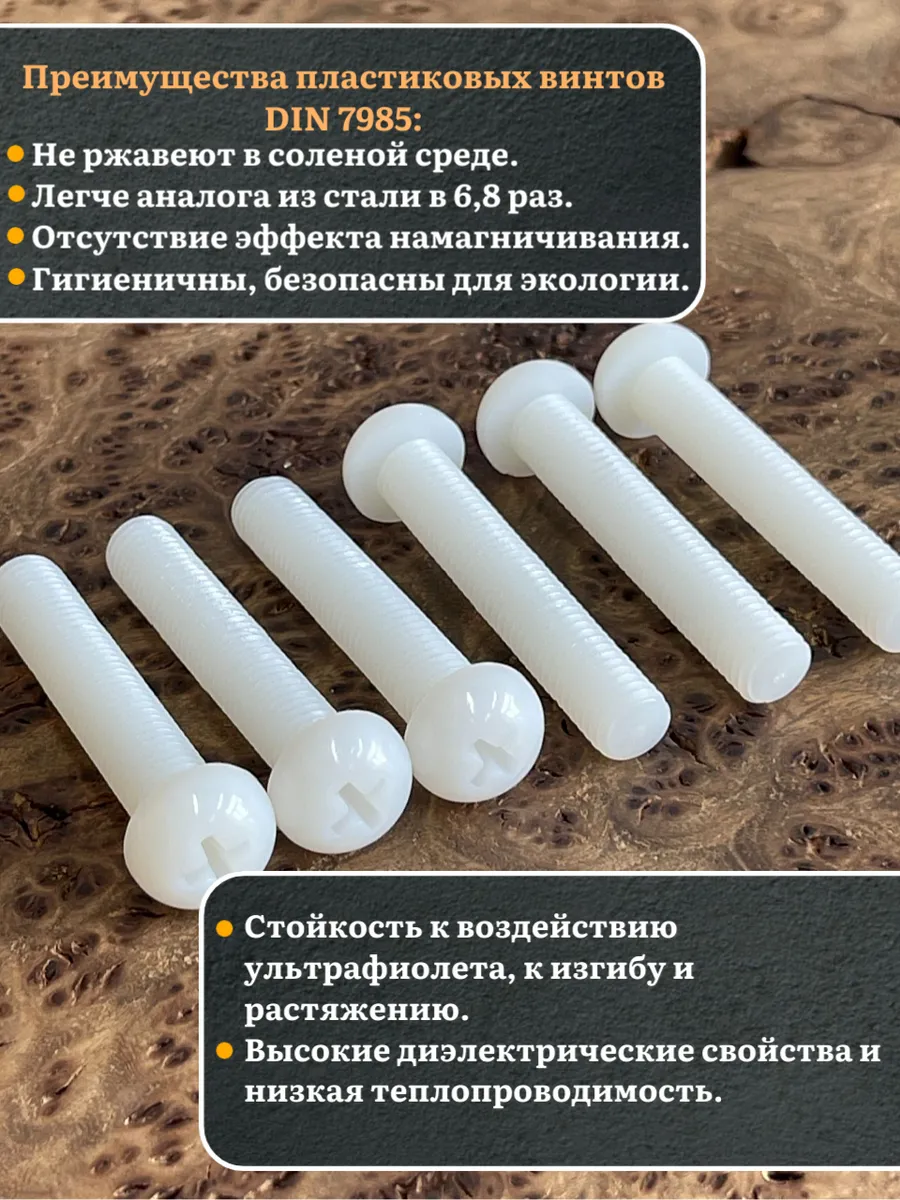 Винт полиамидный 10х60 мм DIN7985 (пластик), 10 шт.