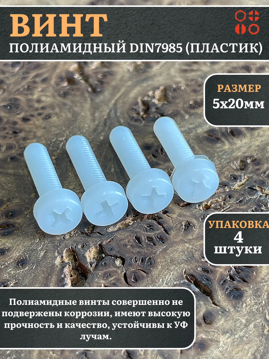 Винт полиамидный 5х20 мм DIN7985 (пластик), 4 шт.