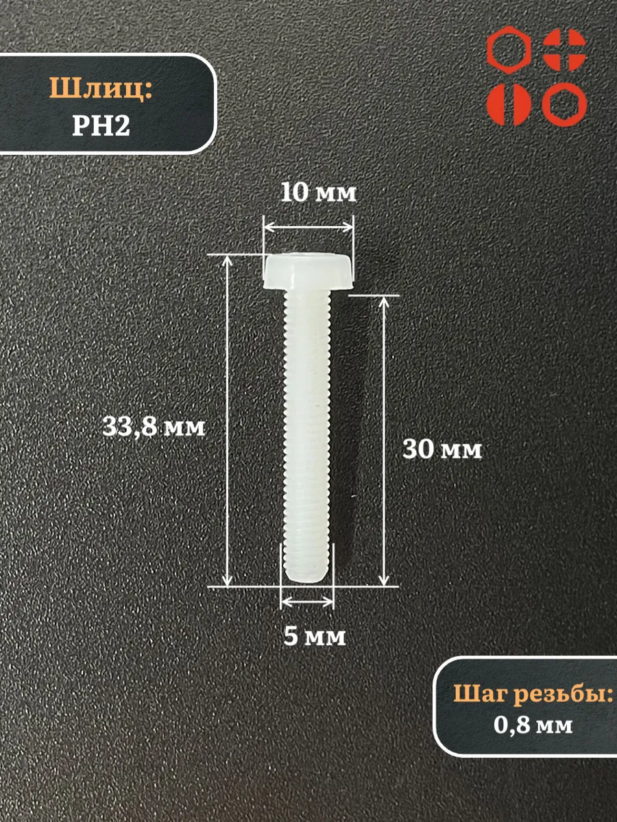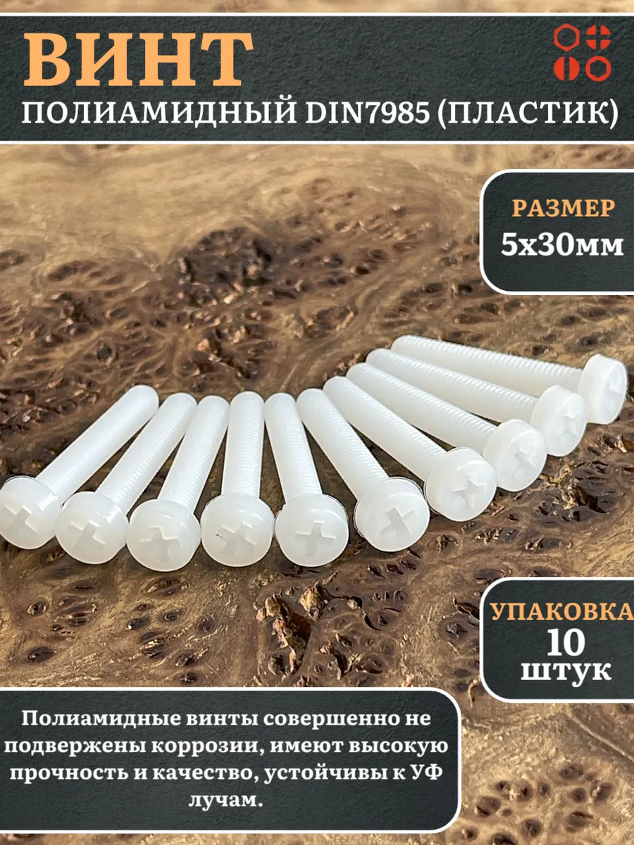 Винт полиамидный 5х30 мм DIN7985 (пластик), 10 шт.