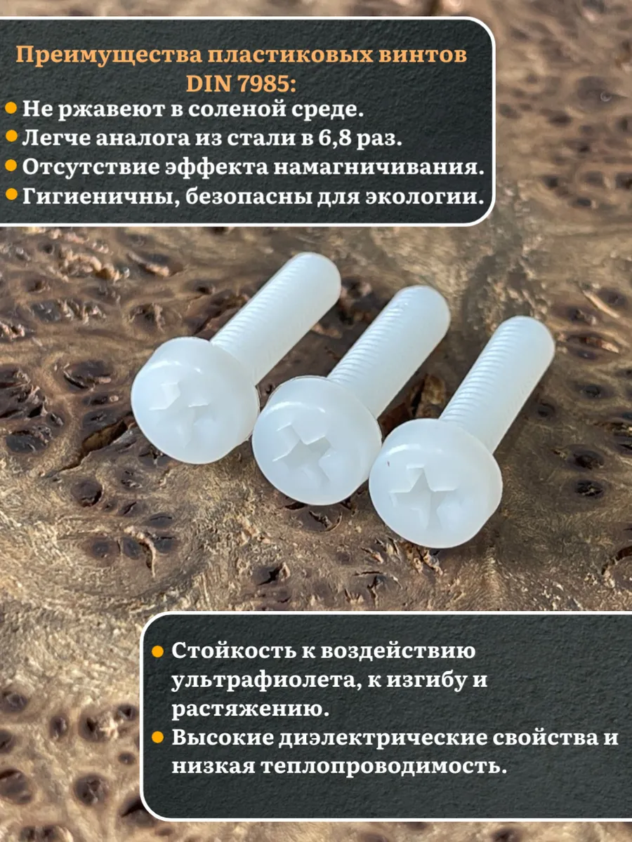 | Винт полиамидный 6х20 мм DIN7985 (пластик), 20 шт. | вп6207985ф20 | 1 шт. |